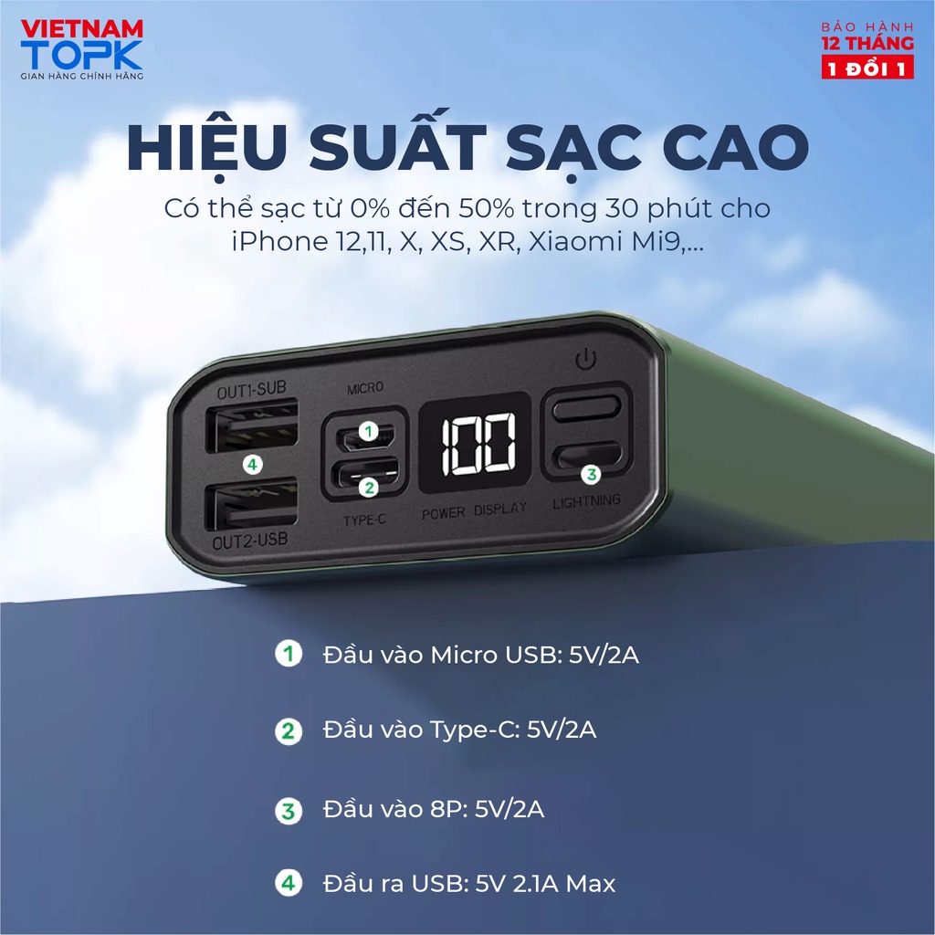 Thương hiệu: TOPK | Xem thêm các sản phẩm Pin sạc dự phòng di động của TOPKMô tả ngắn