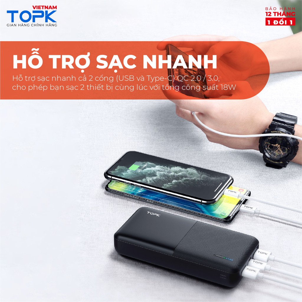 Điện Thoại & Phụ Kiện > Pin sạc dự phòng > 10000 - 20000mAh || Sạc dự phòng 20000mAh TOPK I2009/ I2009P Sạc nhanh 18W PD QC 3.0 2 cổng ra - Hàng chính hãng Bảo hành 12 tháng 1 đổi 1Còn hàng