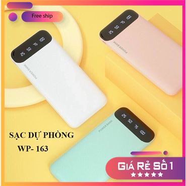 👍Sạc dự phòng 20.000mAh nhỏ gọn thời trang WP-163 sạc 2 thiết bị cùng lúc. Hỗ trợ sạc nhanh 2.1A. Chất liệu nhựa PC+ABS, an toàn, chống cháy nổ.