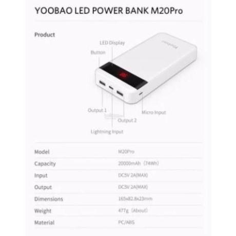 Sạc dự phòng 20000mAh YB-M20Pro YOOBAO