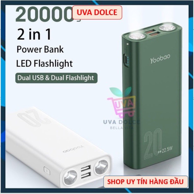 Sạc Dự Phòng 20000mAh Yoobao L20 Siêu Bền Tích Hợp 2 Đèn Led Siêu Sáng [Bảo Hành Chính Hãng]