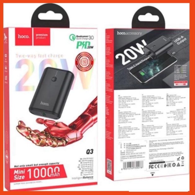 Giới thiệu Sạc Dự Phòng 20W Hoco Q3 mini Siêu Tốc 20W, Q3.0. 10000mah. Sạc Dự Phòng Chính Hãng Hoco Q3. PKCH8886