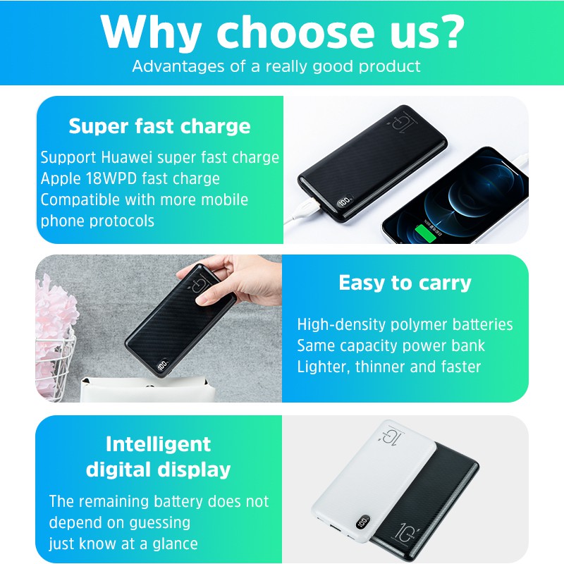 Giới thiệu Sạc Dự Phòng 22.5W PT108D 10000mAh Sạc nhanh Cho iPhone Huawei Samsung Xiaomi Oppo Vivo Realme