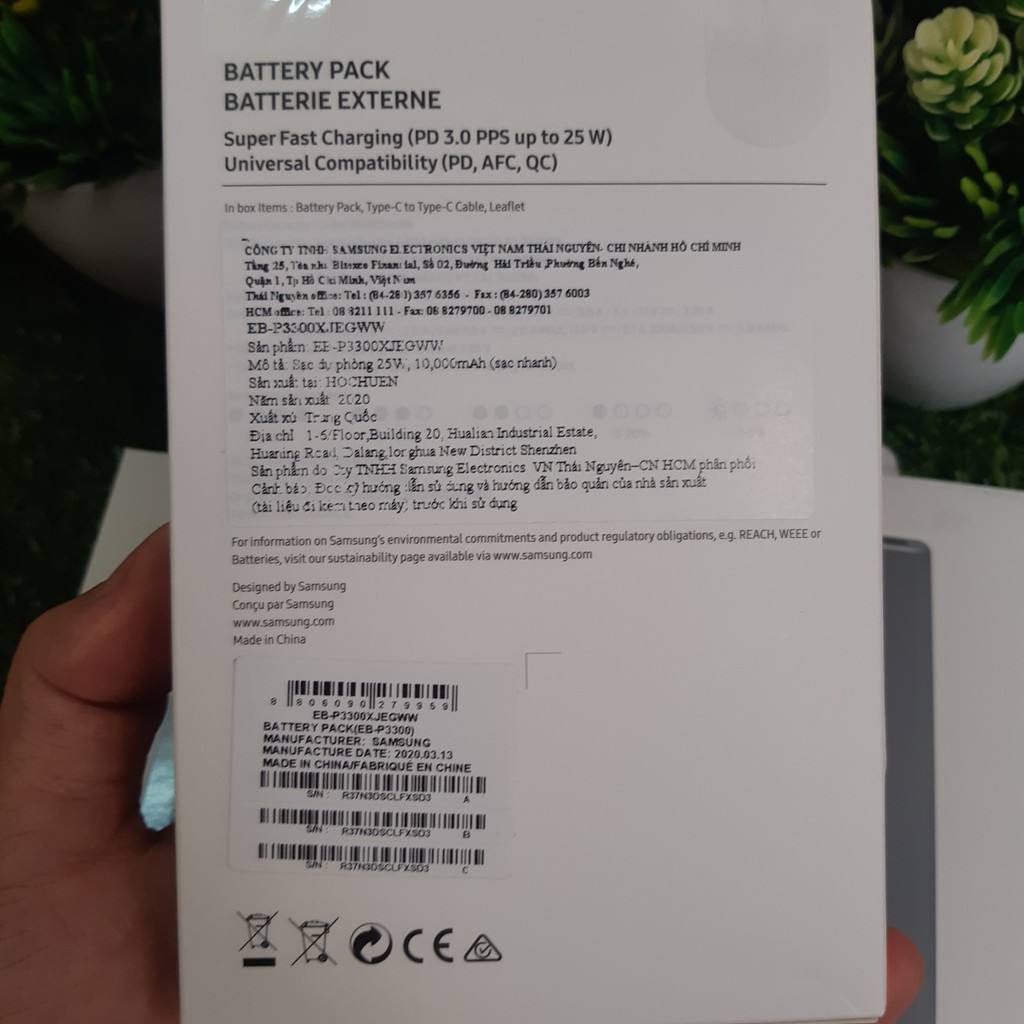 Điện Thoại & Phụ Kiện > Phụ kiện > Sạc dự phòng & Pin > Sạc dự phòng || Sạc Dự Phòng 25W Samsung EB-P3300X 10.000mAh Chính Hãng, Nguyên Seal, Bảo Hành Hãng (Up to 25W Super Fast Charging)Còn hàng