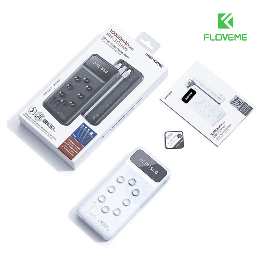Sạc Dự Phòng 3 in 1/10000mAh Floveme WK 223, Sạc Nhanh Hiển Thị Màn Hình Điện Tử, Dành Cho iOS iPhone và Android