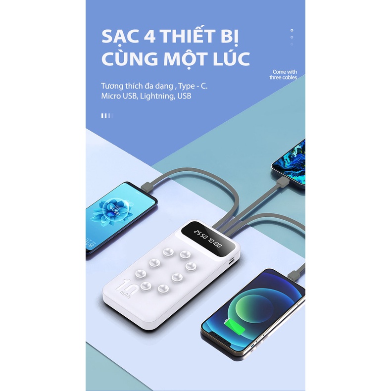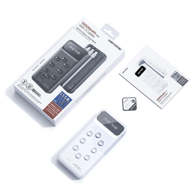 Sạc Dự Phòng 3 in 1 10000mAh WEKOME 223 Sạc Nhanh Hiển Thị Màn Hình Điện Tử , sạc nhiều thiết bị 1 lúc ,đa chức năng