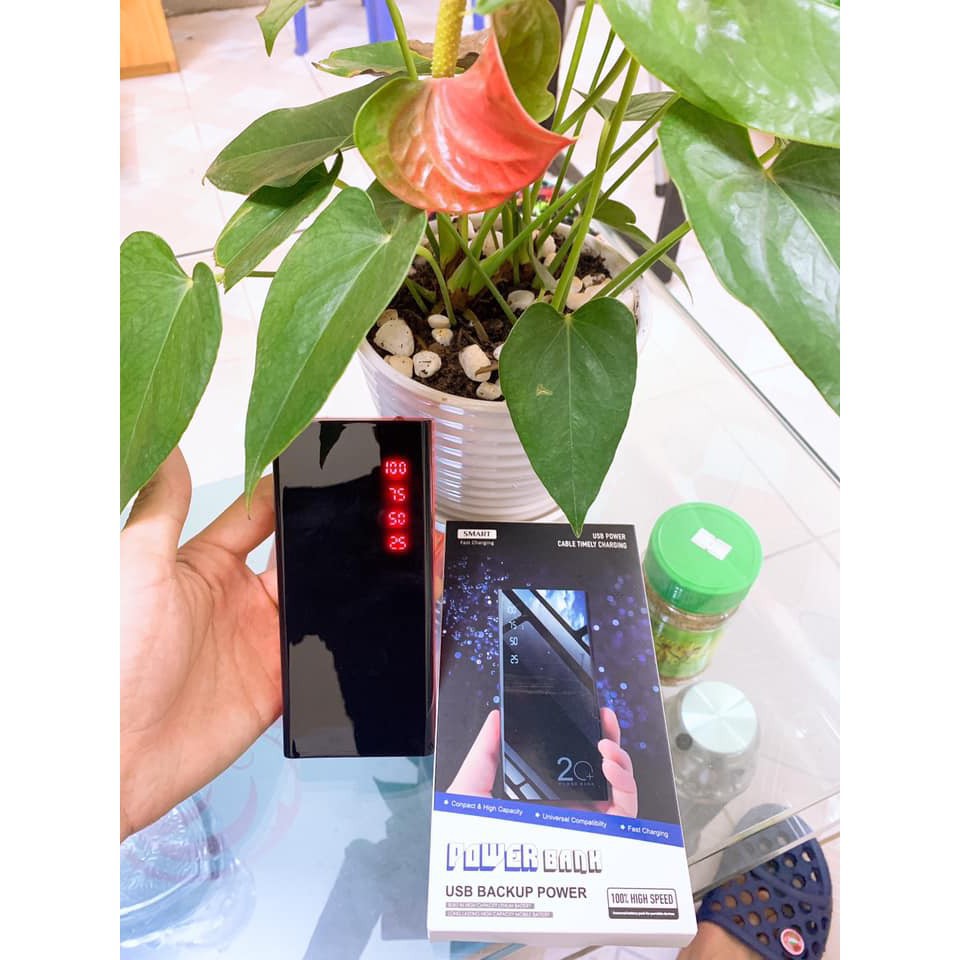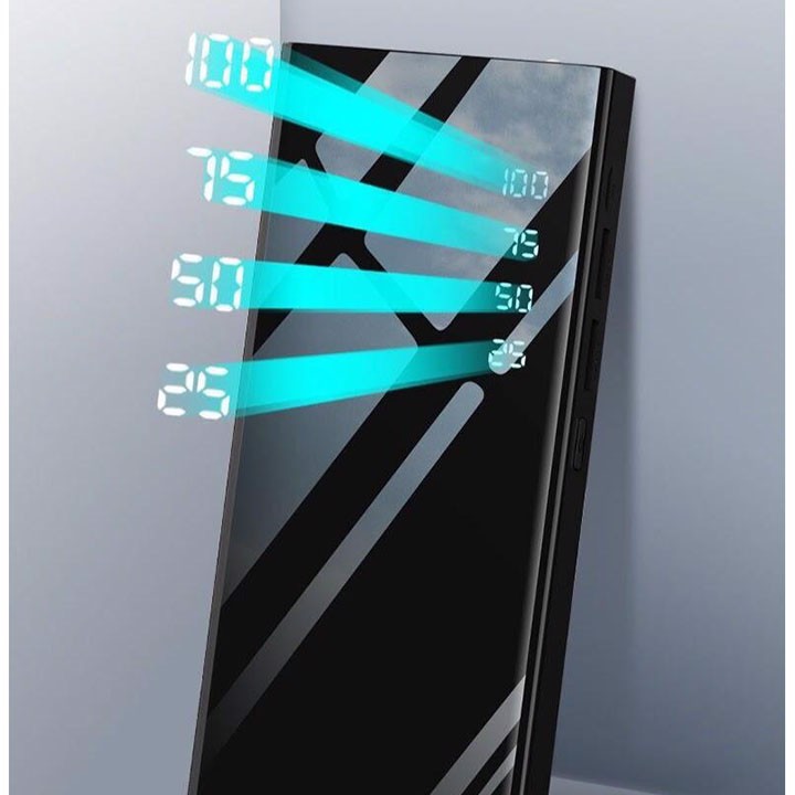 Sạc dự phòng 30000 mAh FREESHIP Tích Hợp Sạc Nhanh Fast Charge Mặt Kính Đen hiển phần trăm thị pin. 2 USB Có Đèn
