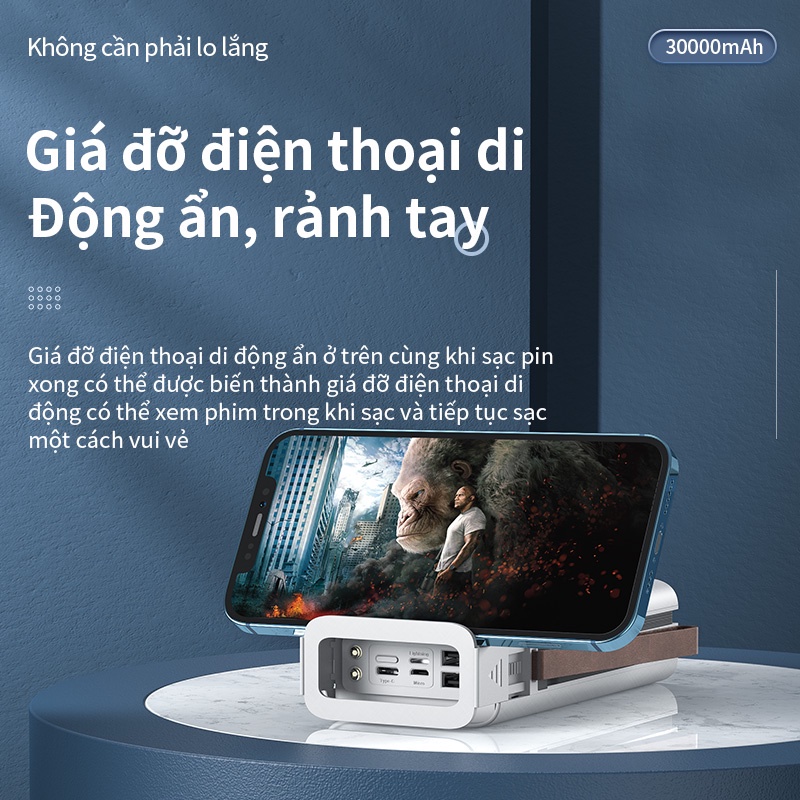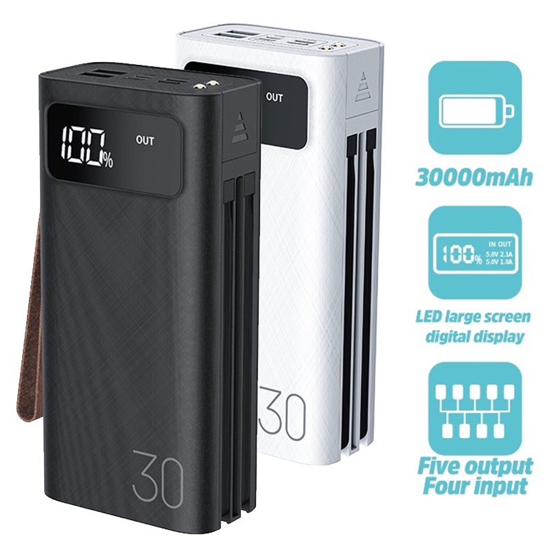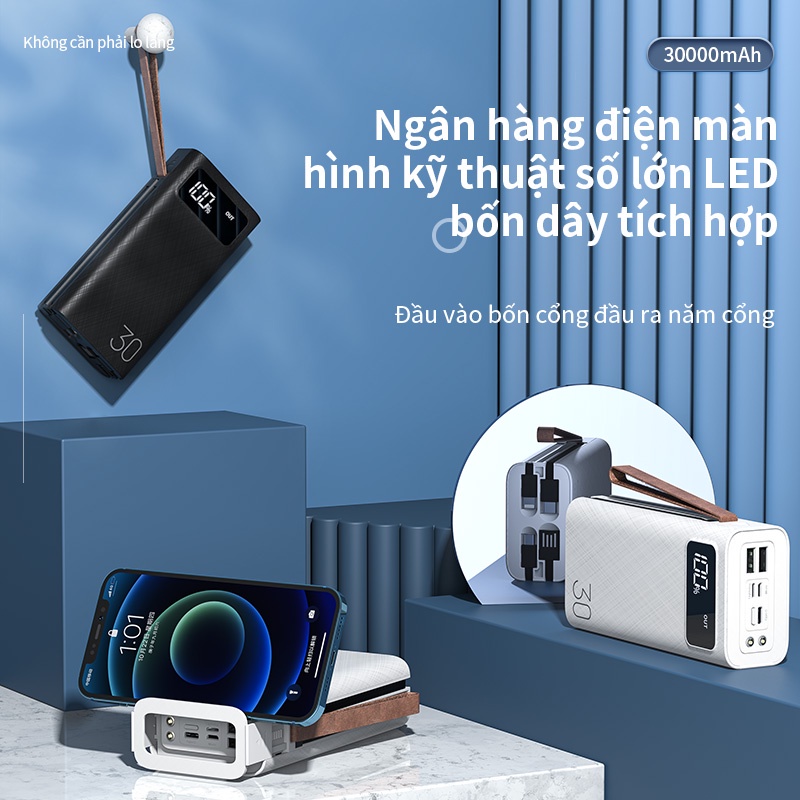Điện Thoại & Phụ Kiện > Phụ kiện > Sạc dự phòng & Pin > Sạc dự phòng || Sạc dự phòng 30000mAh BASIKE PT302P có Cáp Sạc, đèn pin, giá đỡ điện thoại, dây buộc cho iPhone Huawei SamsungCòn hàng