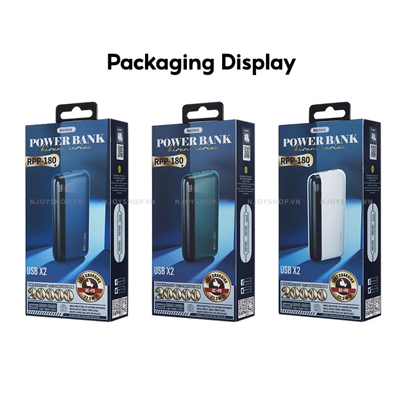Sạc Dự Phòng 4 Cổng Sạc REMAX RPP-180 20000mAh Sạc Nhanh PD + QC 22.5W Đèn Led Báo Pin Cho iPhone Samsung Xiaomi OppoTHÔNG TIN SẢN PHẨM