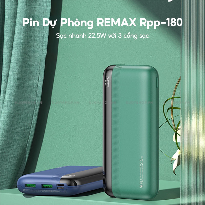 Giới thiệu Sạc Dự Phòng 4 Cổng Sạc REMAX RPP-180 20000mAh Sạc Nhanh PD + QC 22.5W Đèn Led Báo Pin Cho iPhone Samsung Xiaomi Oppo