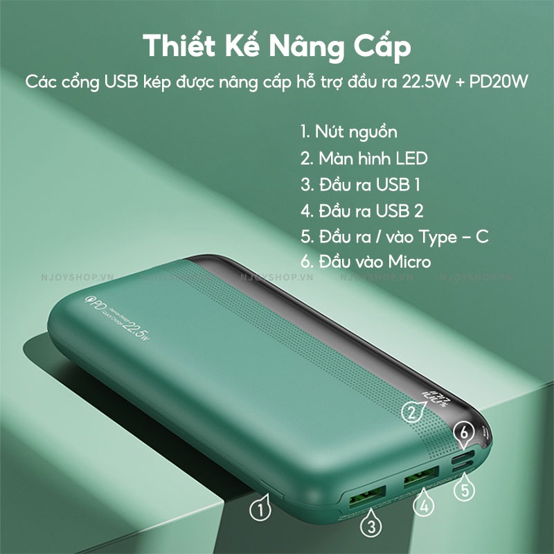* Thiết kế nâng cấp với các cổng USB kép được nâng cấp hỗ trợ đầu ra 22.5W + PD 20W