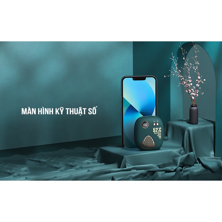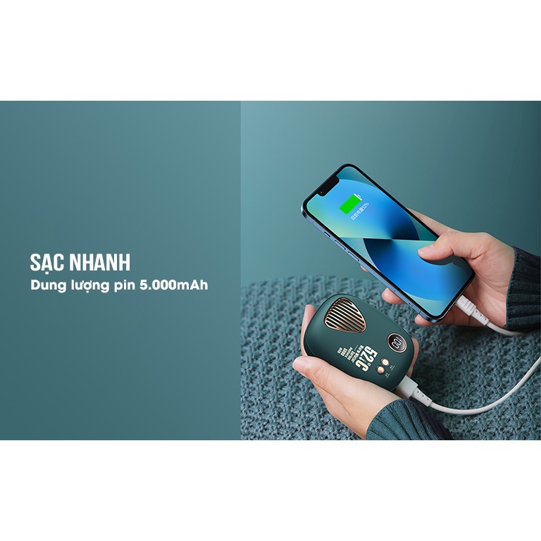 - Sạc dự phòng kiêm máy sưởi có thiết kế vô cùng nhỏ gọn chỉ như một chiếc cầm tay mini với kích thước 82x72x32.5mm