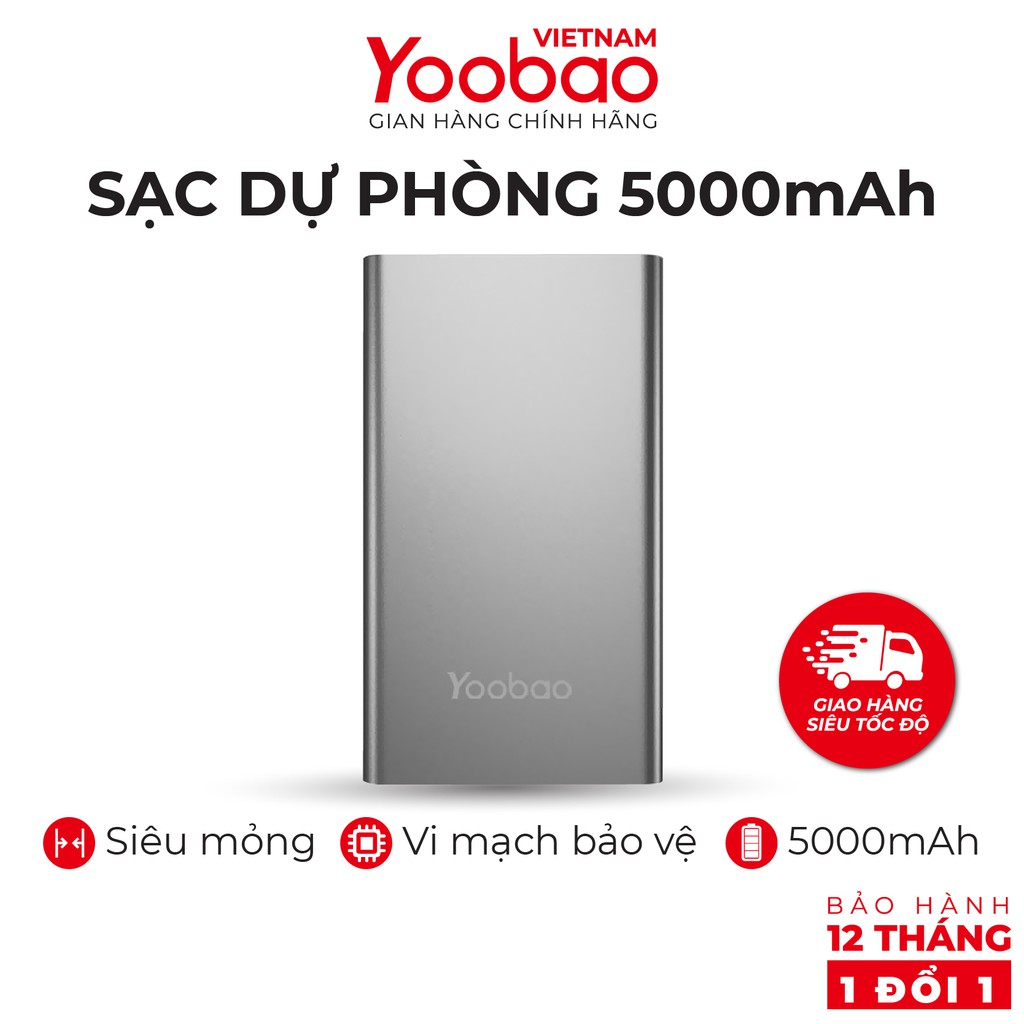 Sạc dự phòng 5000mAh Yoobao PL5 Polymer - Hàng chính hãng - Bảo hành 12 tháng 1 đổi 1