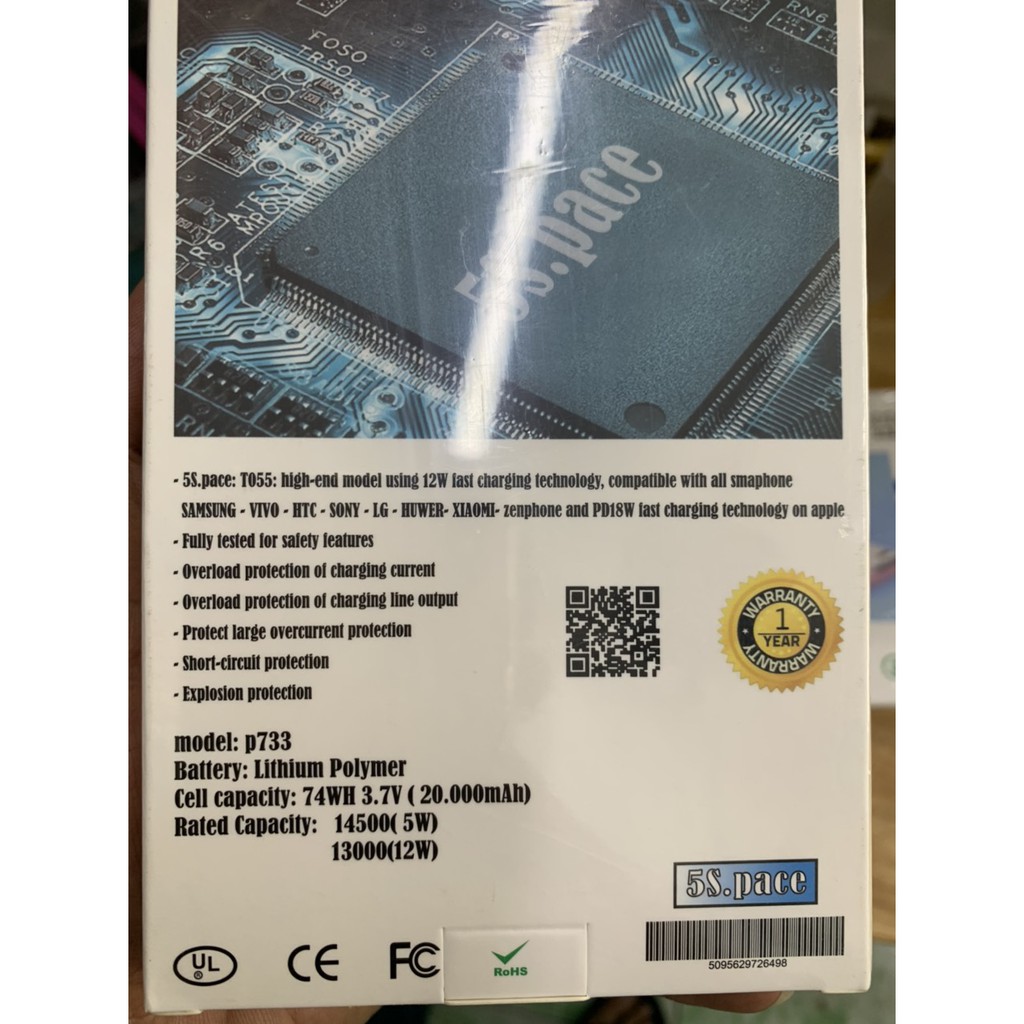 Giới thiệu Sạc dự phòng 5S Pace 5000mah-20000mah việt nam, bảo hành 12 tháng