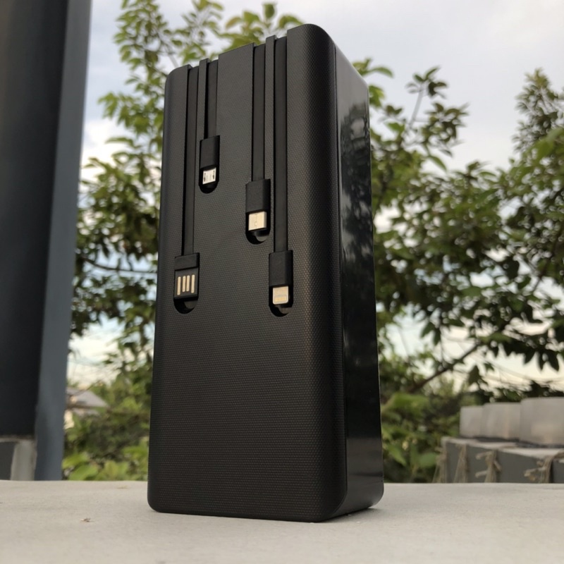 Tích hợp sẵn cáp sạc vào usb, và 3 cáp sạc ra type c, micro usb, lightning (iphone). Cổng usb out, và cổng type c.