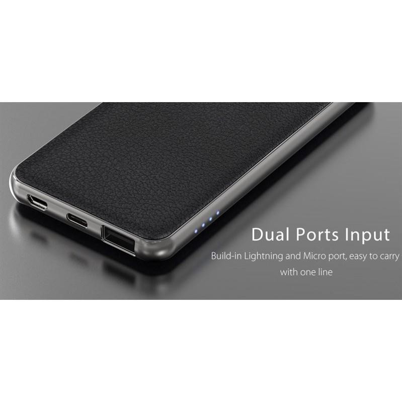 Vỏ nhôm nguyên khối rất chắc chắn, 01 nút nguồn, nhấn để sạc, 4 đèn led hiển thị chỉ số pin, mỗi đèn tương ứng 25% pin, 01 cổng USB sạc, 01 cổng vào MicroUSB
