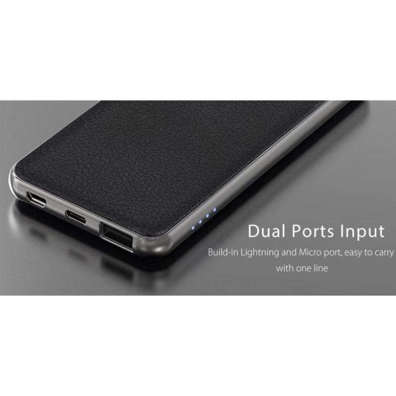 Vỏ nhôm nguyên khối rất chắc chắn, 01 nút nguồn, nhấn để sạc, 4 đèn led hiển thị chỉ số pin, mỗi đèn tương ứng 25% pin, 01 cổng USB sạc, 01 cổng vào MicroUSB