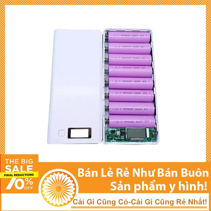 Sạc dự phòng 8 pin hiển thị LCD 10000mah đã có pin sẵn