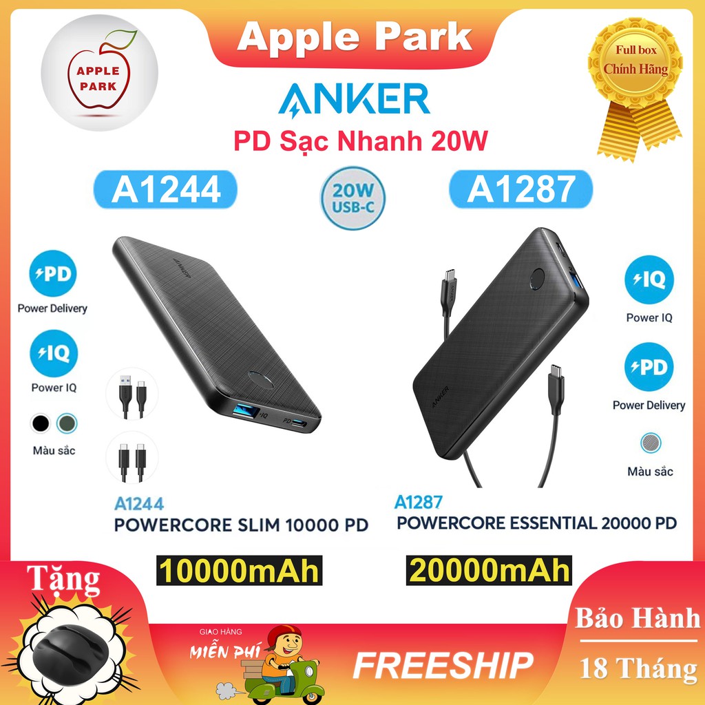 Sạc Dự Phòng Anker Sạc nhanh PD 20W A1244 10000mAh / A1287 20000mAh,2 Cổng Đầu Ra PD Max 20W USB-A Max 12W