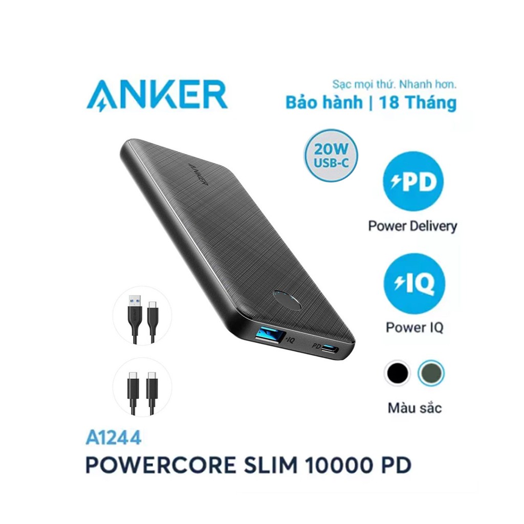 Điện Thoại & Phụ Kiện > Pin sạc dự phòng > 10000 - 20000mAh || Sạc Dự Phòng Anker A1244 10000mAh A1287 20000mAh PD 20W PowerCore Slim Sạc Nhanh,2 Cổng Đầu Ra PD Max 20W USB-A Max 12WCòn hàng