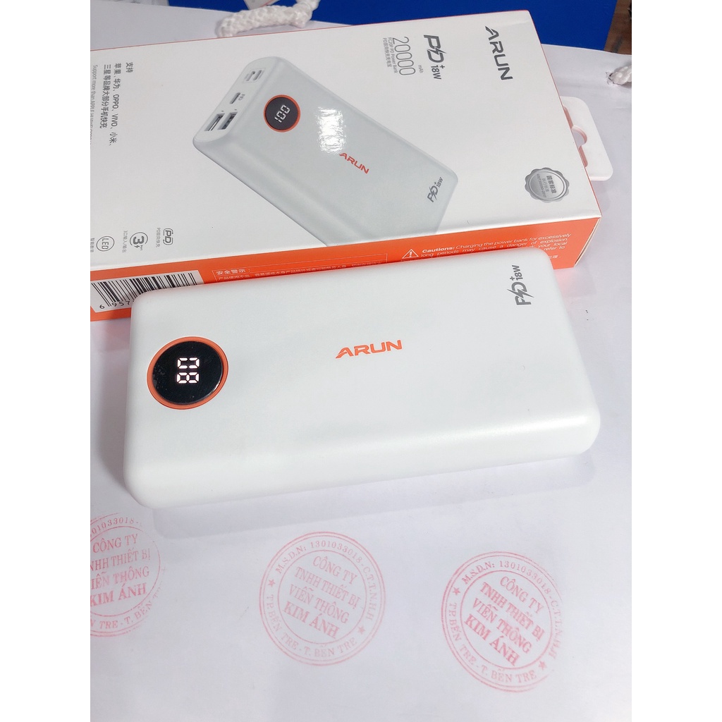 Arun 20.000mah PD18w là dòng pin sạc dự phòng 20 000mAh với thiết kế 2 cổng sạc nhanh QC 3.0 USB + 1 cổng Ip + 1 cổng Micro +1 cổng PD cho khả năng sạc 5 thiết bị cùng lúc với nguồn ra 5V.