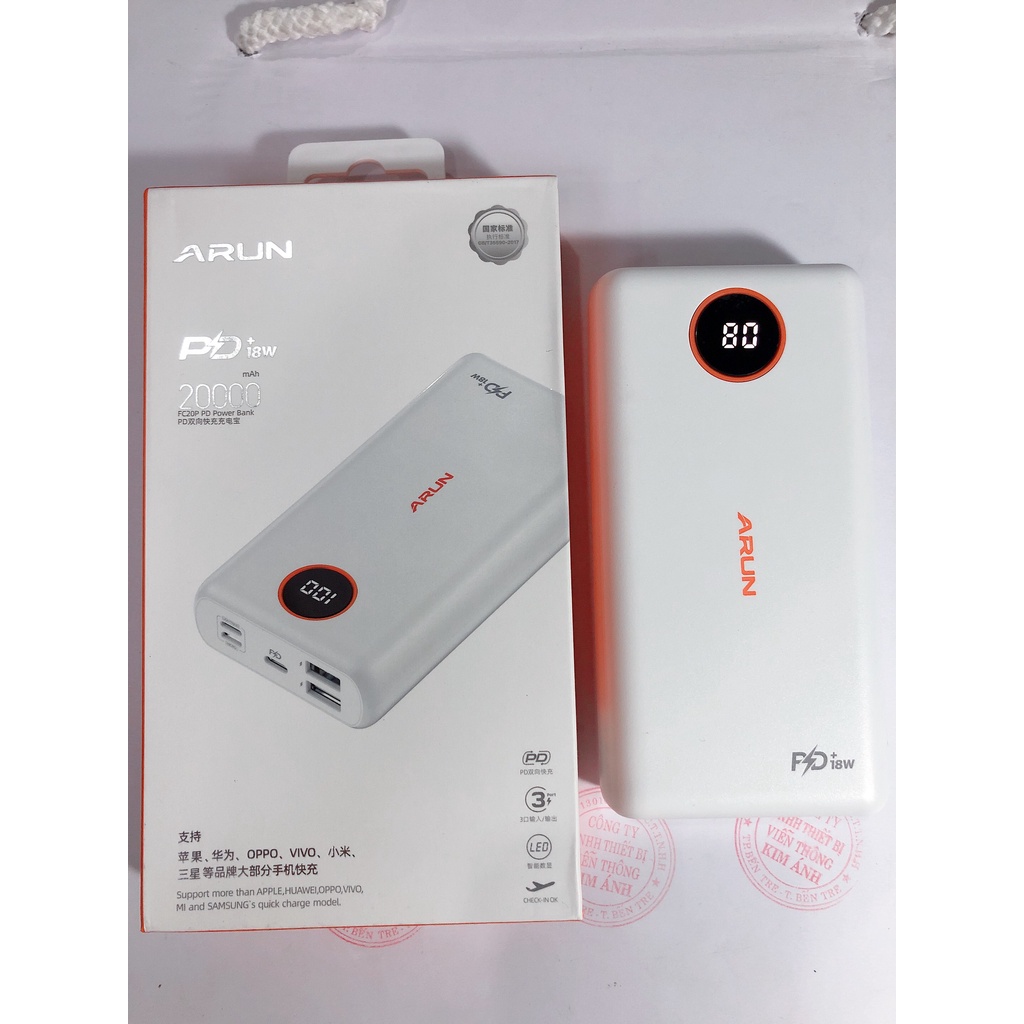 Không chỉ cho dòng điện đầu ra lớn hơn, điều quan trọng ở cục pin sạc dự phòng 20 000mAh này chính là hệ thống chip thông minh, tự động điều chỉnh dòng điện đầu ra dựa vào thiết bị kết nối vừa đảm bảo tốc độ sạc nhanh, vừa đảm bảo an toàn pin của thiết bị. Arun 20.000mah PD18W sử dụng vi mạch điều khiển USB thông minh và vi mạch điều khiển sạc và xả chất lượng với các lớp bảo vệ: quá nhiệt, quá tải, đoản mạch... đồng thời giúp nâng cao hiệu suất nạp xả toàn diện