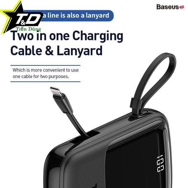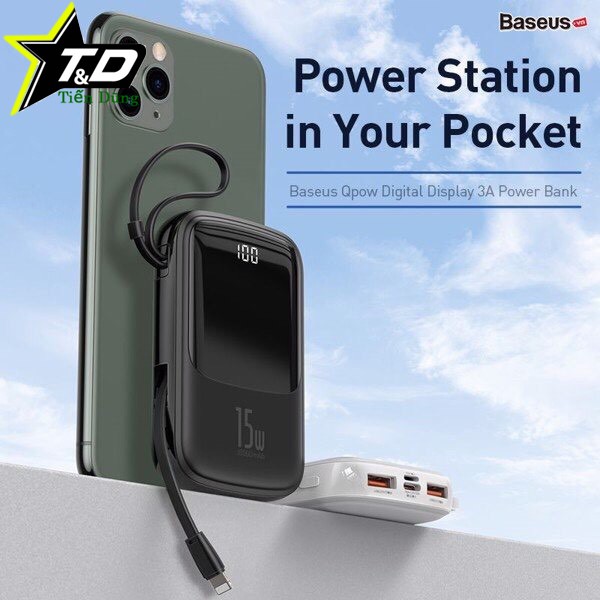 - Pin sạc dự phòng 10000mAh nhỏ gọn chính hãng Baseus. Tích hợp sạc nhanh 15W. Là mẫu pin dự phòng sạc nhanh có thiết kế nhỏ gọn dễ dàng mang theo, được tích hợp sẵn 1 dây Lightning hoặc dây micro ngắn dùng cho iPhone và anđroid .