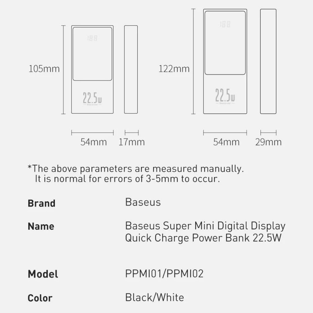 Sạc Dự Phòng Baseus 10000mAh/ 20000mAh 22.5W, Màn hình LED nhỏ gọn, hổ trợ sạc nhanh QC 3.0 cho Iphone Xiaomi - Baseus Super Mini Digital Display (5V/4.5A PD Fast Charging , USB-C PD Input/Output Dual Way) LV883⭐ Gói hàng bao gồm: