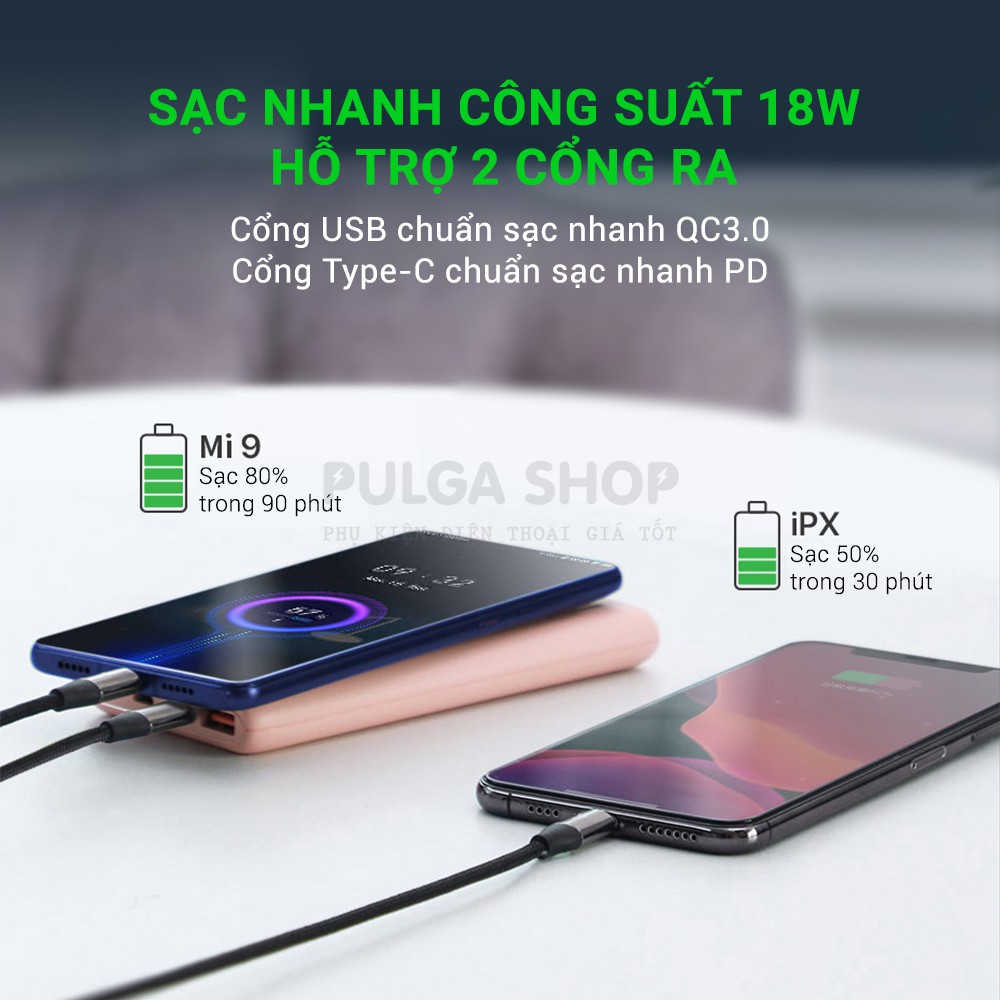 ⚡ Sạc dự phòng 10000mAh tương thích với QC3.0, PD3.0, FCP, AFC và các giao thức sạc nhanh khác… hỗ trợ sạc nhanh hầu hết các dòng Smartphone như: iPhone, Xioami, Huawei, Samsung…