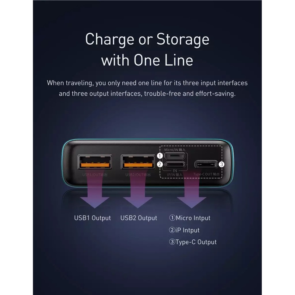 - Hỗ trợ 3 cổng ra cho phép sạc cùng lúc nhiều thiết bị, sạc nhanh 3.0 lên đến 22.4W, kèm theo đó là cổng sạc type C hỗ trợ sạc nhanh 2 chiều.