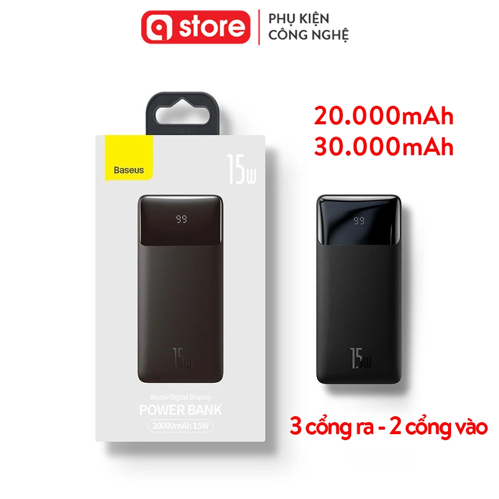 Điện Thoại & Phụ Kiện > Phụ kiện > Sạc dự phòng & Pin > Sạc dự phòng || Sạc dự phòng Baseus 20000 mAh Qstore, Baseus Bipow Digital Display 15W màn hình LED 3 cổng sạc ra, Type CCòn hàng