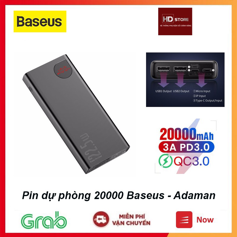 Pin dự phòng Baseus 20000mAh Sạc nhanh 20W có Led hiển thị Adaman cho IPhone 11 12 13 Pro Max Samsung Metal