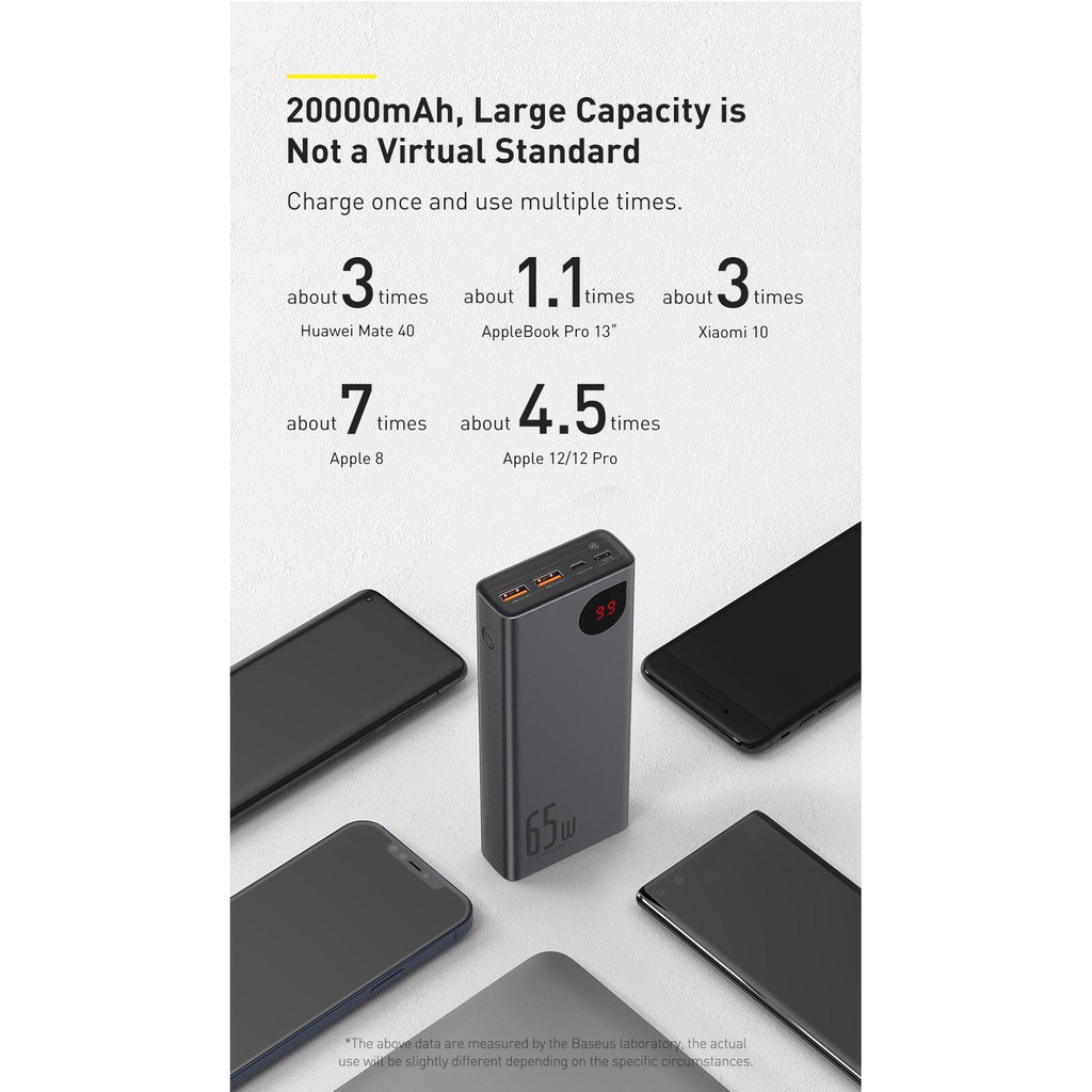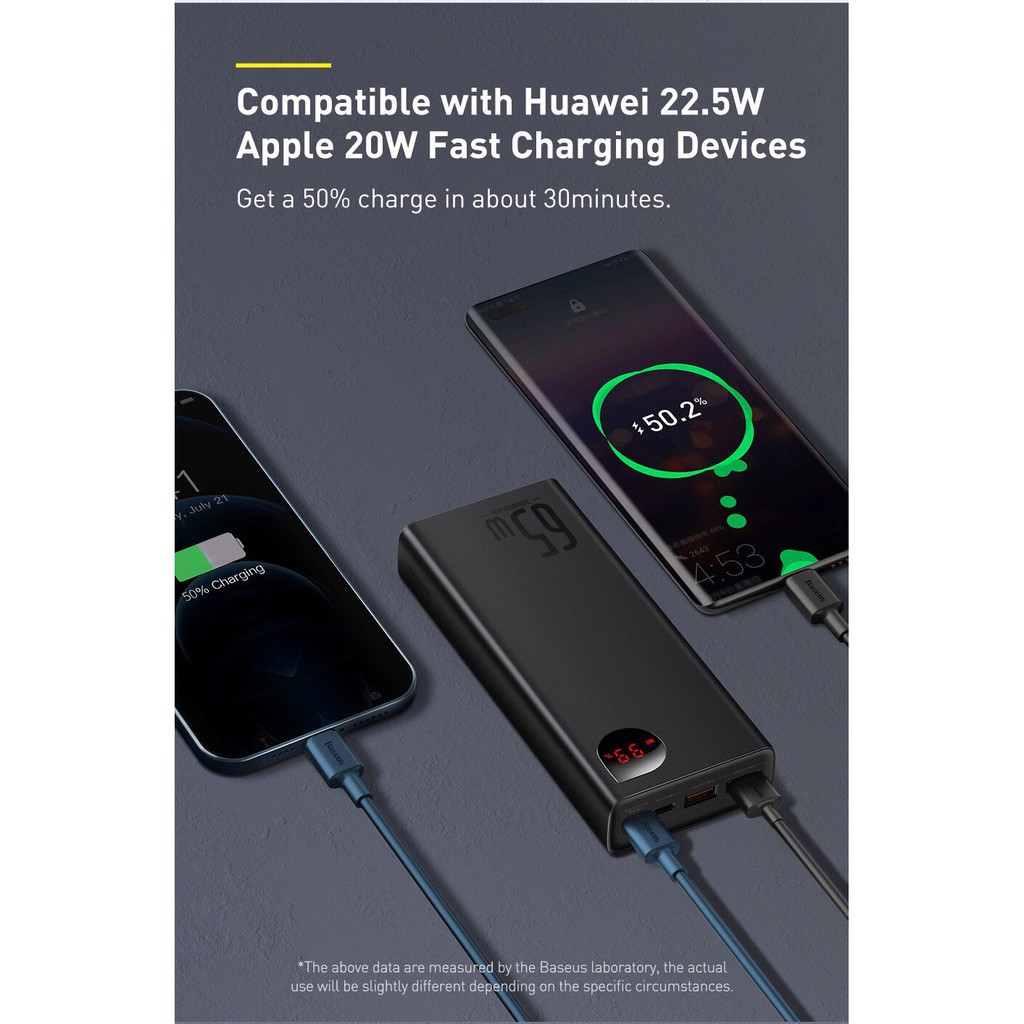 Sạc dự phòng Baseus 20000mAh 65W sạc nhanh hỗ trợ đầu ra cổng type C PD
