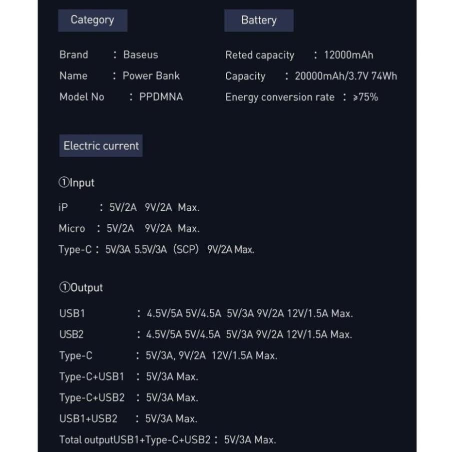 ✔️ Input: Micro, Lightning, Type C (5V/2A 9V/2A Max. 5V/2A 9V/2A Max. 5V/3A 5.5V/3A (SCP) 9V/2AMax.)