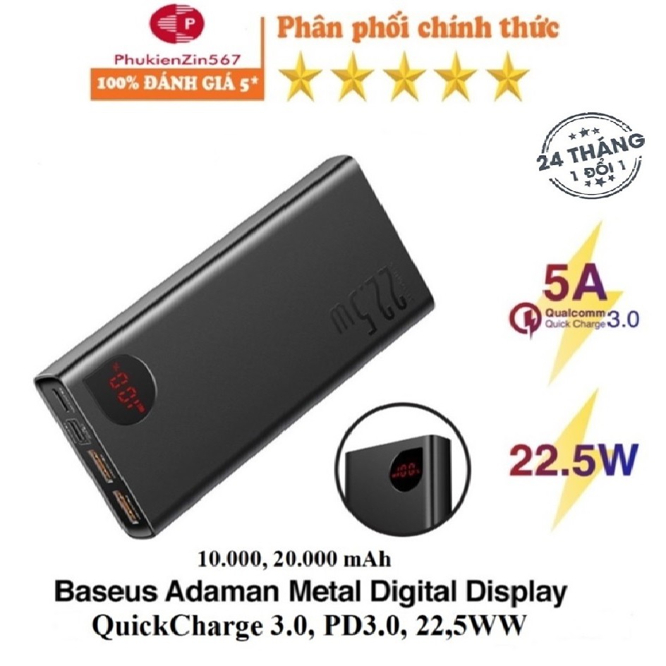 Sạc dự phòng Baseus Adaman Metal Digital Display Quick Charge, sạc nhanh 22.5W (QC3.0/ PD3.0) chính hãng BH 24 tháng
