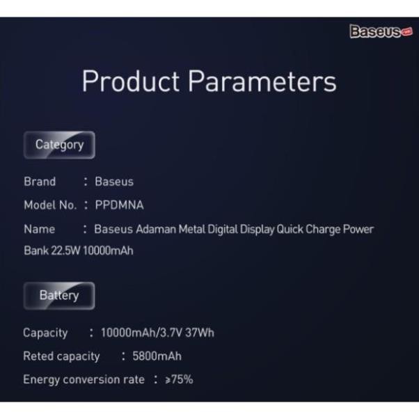 Giới thiệu Sạc dự phòng Baseus Adaman Metal Digital Display Quick Charge, sạc nhanh 22.5W (QC3.0/ PD3.0) chính hãng BH 24 tháng