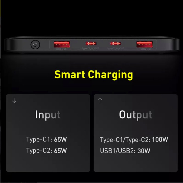 ✔️Đầu ra USB + Type-C: 65W + 30W