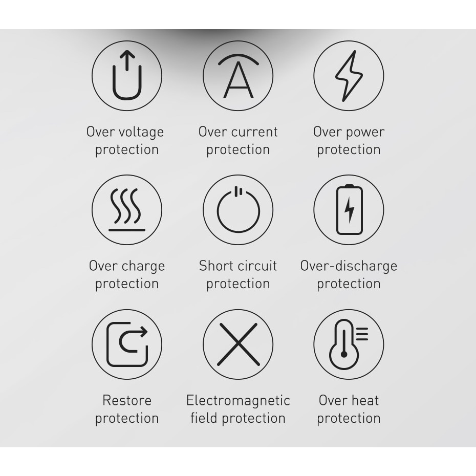 USB Output: 4.5V / 5A, 5V / 4.5A, 5V / 3A 9V / 2A, 12V / 1.5A