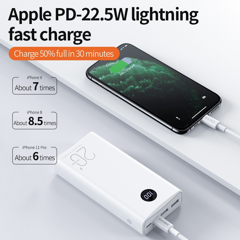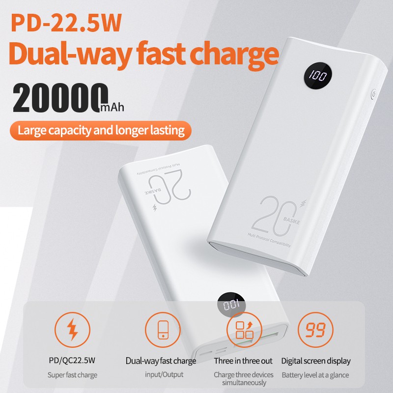 Sạc dự phòng BASIKE 20000mAh PD 22.5W 3 đầu vào 3 đầu ra hiển thị màn hình kỹ thuật số cho iPhone Samsung