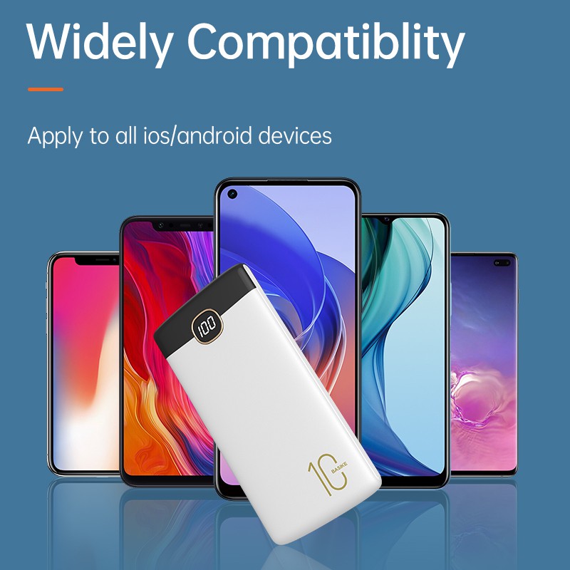 Sạc dự phòng BASIKE dung lượng 10000mah mà hình led kỹ thuật số 4 màu tùy chọn hai đầu ra cổng usb