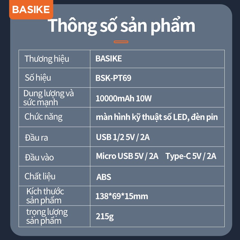 Thương hiệu: BASIKE | Xem thêm các sản phẩm Pin sạc dự phòng di động của BASIKEMô tả ngắn