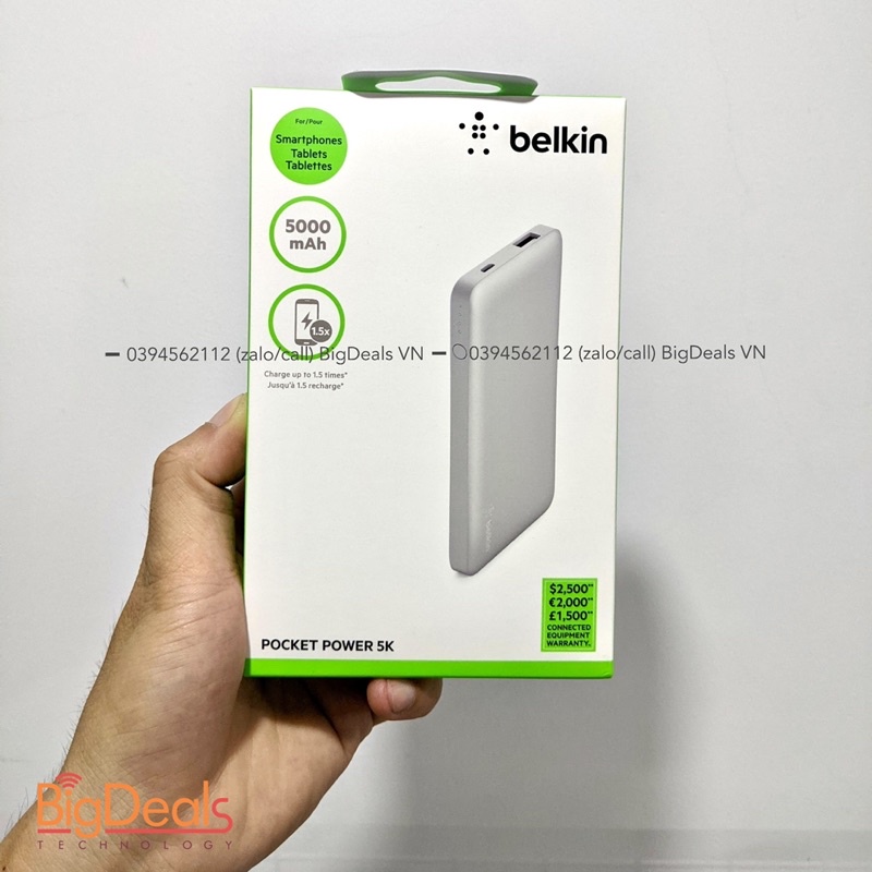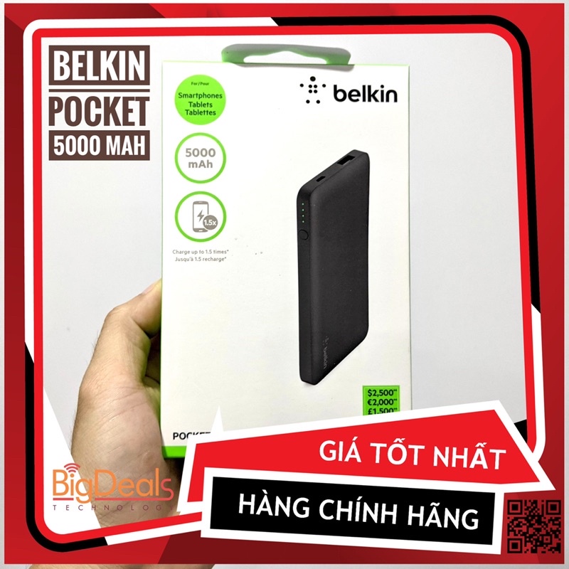 Sạc dự phòng Belkin Pocket Power 5000 mAh - BigDeals VN✅ Sản phẩm chính hãng Belkin