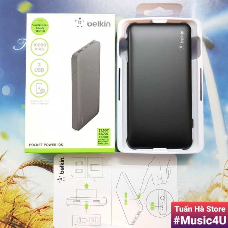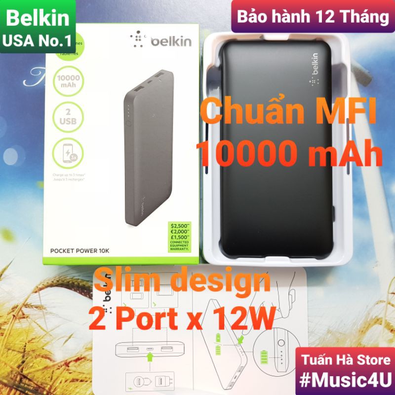 Điện Thoại & Phụ Kiện > Pin sạc dự phòng > 5000 - 10000mAh || [Mã ELFLASH5 giảm 20K đơn 50K] Sạc dự phòng Belkin Pocket Power 10000mAh - F7U020BT, chuẩn MFI [Music4U]Còn hàng