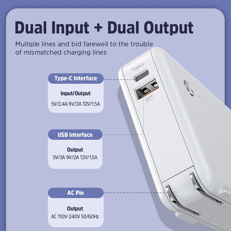 ☀ Đi kèm với phích cắm AC, vừa là pin dự phòng vừa là bộ sạc