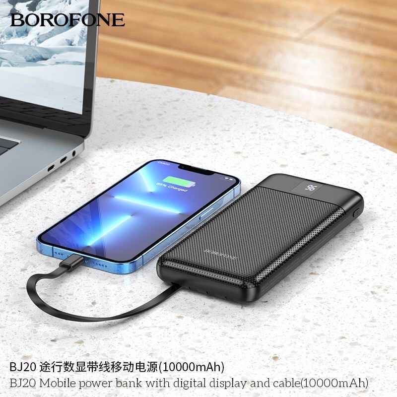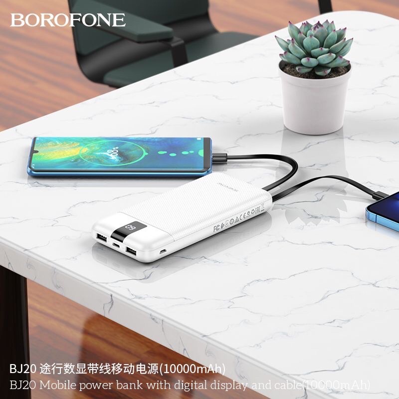 Pin sạc dự phòng Borofone BJ20 10.000mAh tích hợp kèm 3 dây cổng Lightning/TypeC/Micro - chính hãng chất lượng cao, phụ kiện phượt, du lịch
