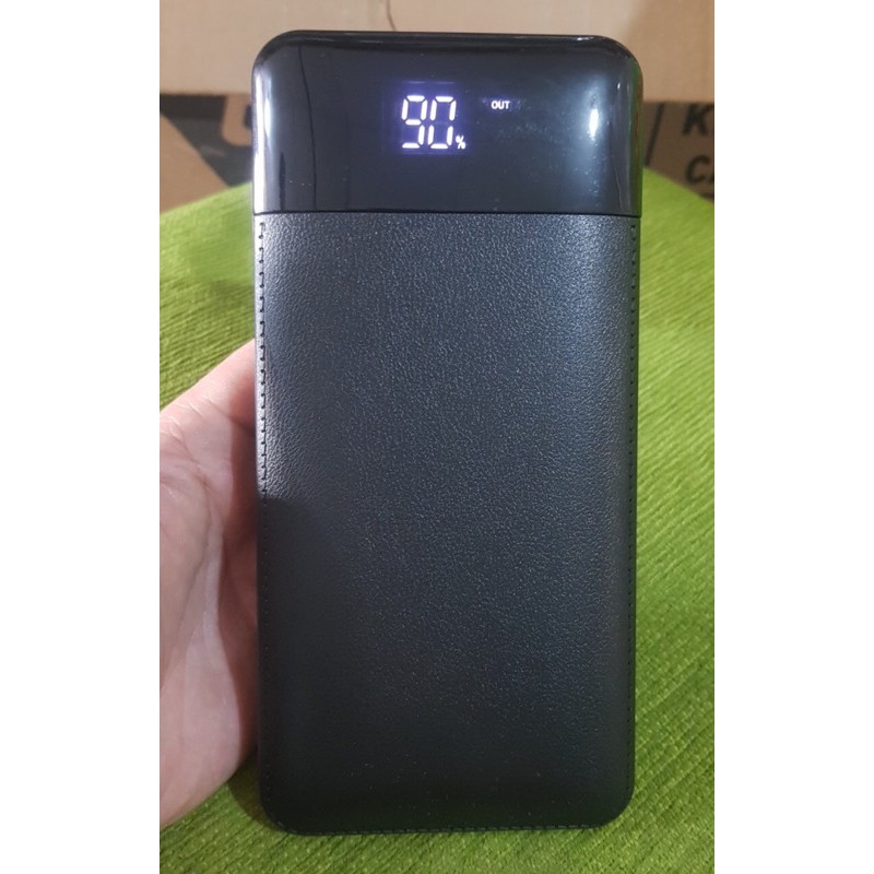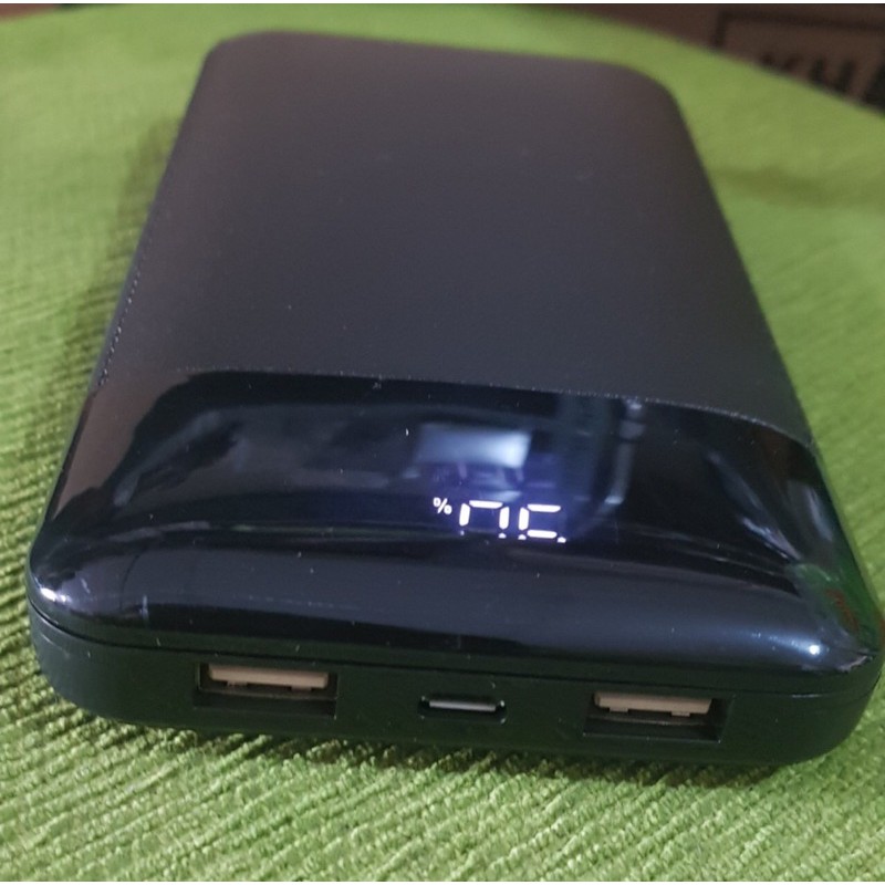 Sạc dự phòng Bunbea YM-121 dung lượng 20000mAh với thiết kế đẹp, to nặng, có màn hình hiển thị, 1 cổng vào Micro USB và 2 cổng ra 5V-2.1A phía trên đầu sạc.Sản phẩm này không hỗ trợ đèn pin.
