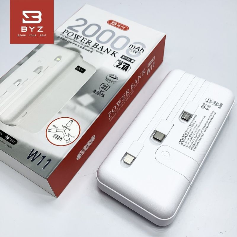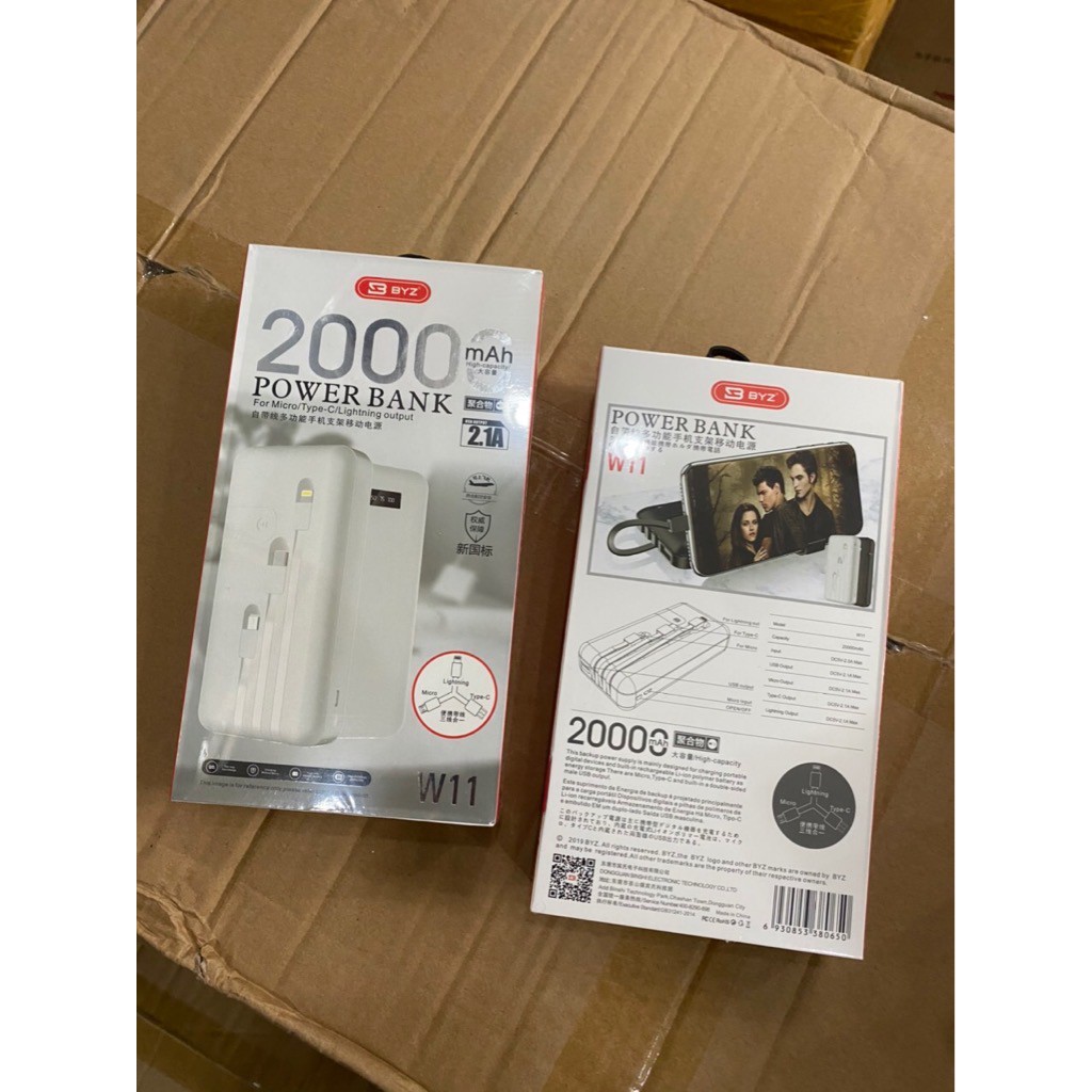 Sạc Dự Phòng BYZ W11 Dung Lượng 20000mah 2 Cổng Sạc Nhanh Có Đèn Báo % Pin
