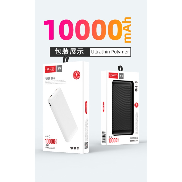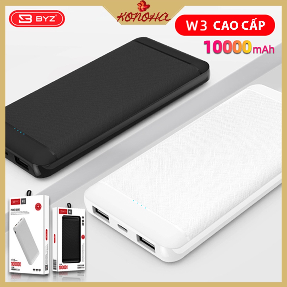Sạc dự phòng BYZ W3 10.000mah 3 cổng kết nối 2USB và 1 type C [ Bảo Hành 12 Tháng]-KONOHA