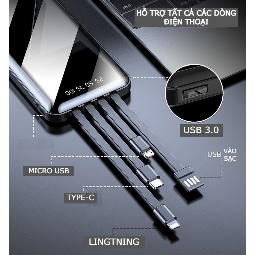 ☑️3 sợi sạc hỗ trợ 3 cổng. micro usb. Type-C. lightning còn 1 sợi cổng usb để sạc vào sạc dự phòng