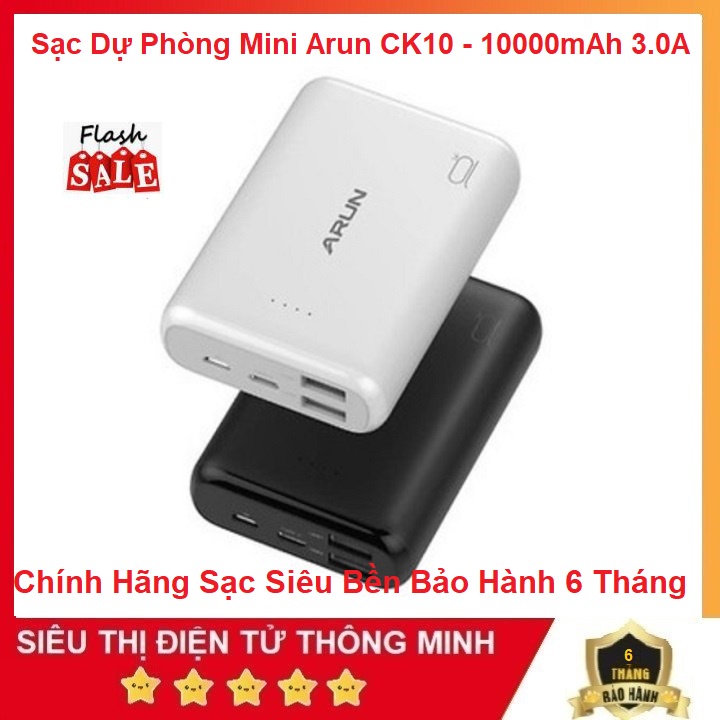✅ Pin Sạc Dự Phòng Chính Hãng Arun, Model CK10 - 10000MAh 3.0A Sạc - Siêu Bền Tiện Dụng - Thiết Kế Thông Minh Bảo Hành 6 Tháng✅ ĐẶC ĐIỂM NỔI BẬT SẠC DỰ PHÒNG MINI ARUN CK10 - 10.000Mah